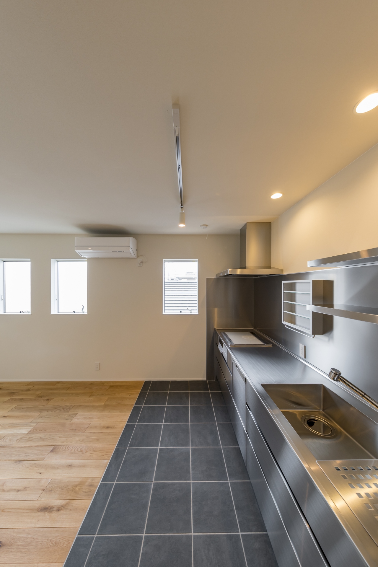 もともと海外生活をしていたことがあるので、日本風よりも海外の雰囲気が好きなので全体的に海外風にしてもらっています。キッチンをオールステンレスにしたり、窓も引き戸ではなく全て押し度や開け戸。照明もダウンライトにしたり白色ではなくオレンジ色の光にしたりとこだわっています。照明に関しては僕が言う前に、長坂さんがそれまでの打合せを通して僕の好みや生活スタイルなどを考えて、こういうのはどうですか?と提案してくださったりと嬉しかったです。そのお陰で、知らなかった素材なども知ることが出来ました。