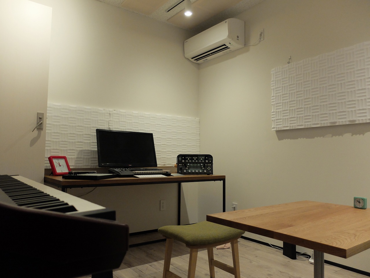 デザインもイメージ通りで満足していますし、生徒さんに来て欲しいと思える教室が作れたので嬉しいです。それと音楽教室の部屋の一面を鏡張りにしましたが、壁一面は大きいので複数の鏡を貼り合わせるのかなと思っていたら、大きな1枚鏡を設置して下さいました。これには正直驚きました!鏡があることで部屋も広く見えますし、生徒さんが演奏する姿勢チェックにもなるので1枚鏡にして頂けたことはとても嬉しかったです。