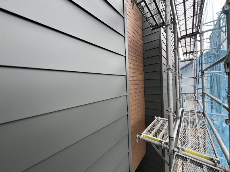 メインの外壁材にはガルバリウム鋼板を採用しています