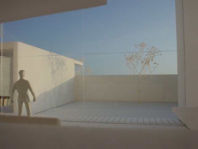 道路側からの見え方として、閉鎖的で、広さ以上に大きく見えるよう、道路側に塀、ガレージを連続的に配します。