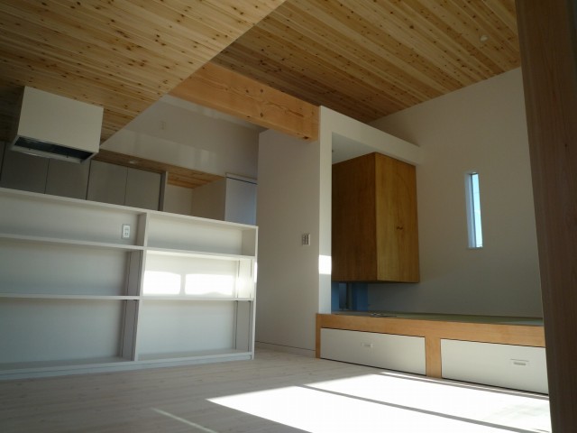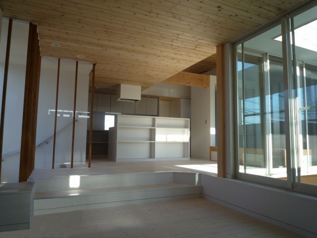 また、限られた敷地の中でも、スキップフロアや天井高さに変化をつけることで、立体的な空間構成とし、平面では感じられない空間の変化や、空間の広がりを創り出します。