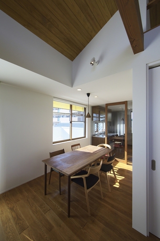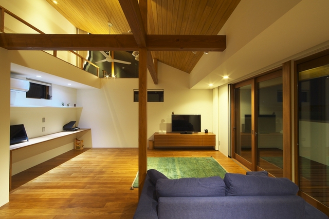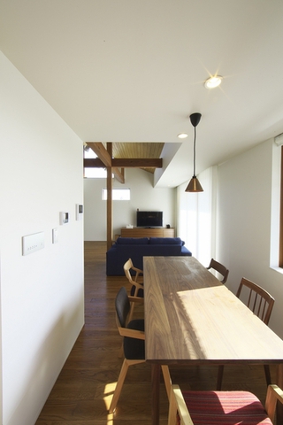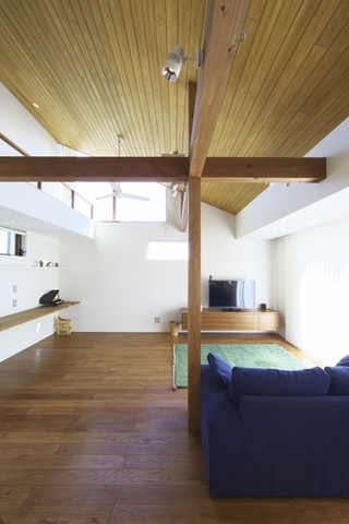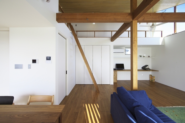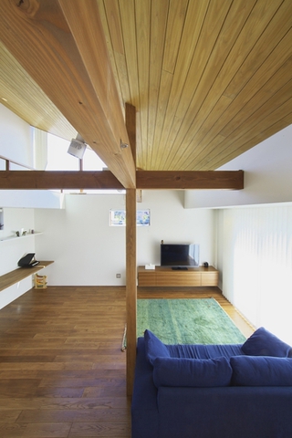 内部リビングまわりは、木の質感を大切にしながら、2階リビングならではの空間構成により、豊かな空間が広がります。